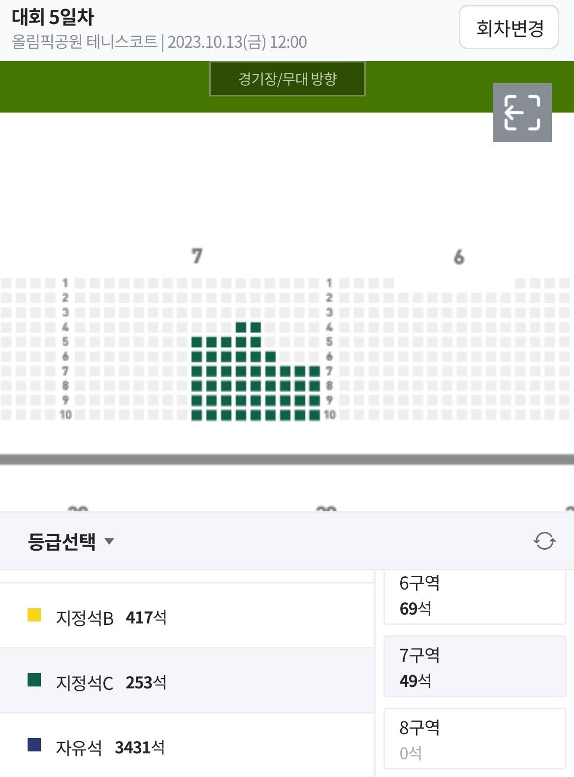 이미 지정 좌석의 좋은 좌석은 마감된 상황이라, 자유석으로 좋은 뷰를 찾아서 앉는 게 좋을 거 같았습니다.