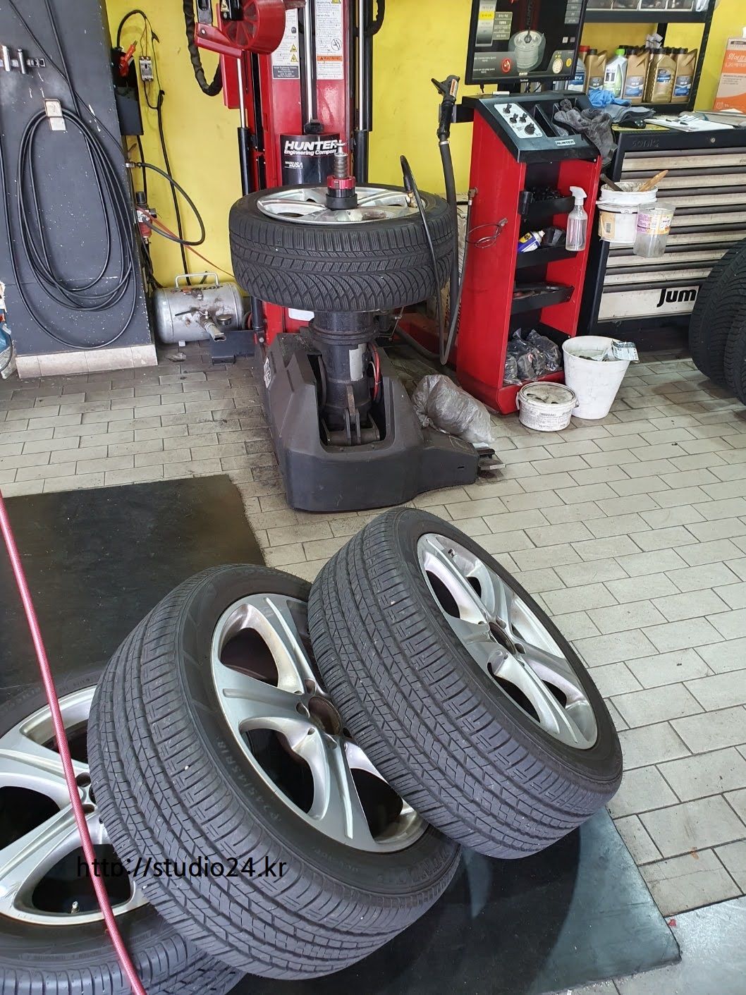 기존 타이어를 빼고, 스노우 타이어로 교체