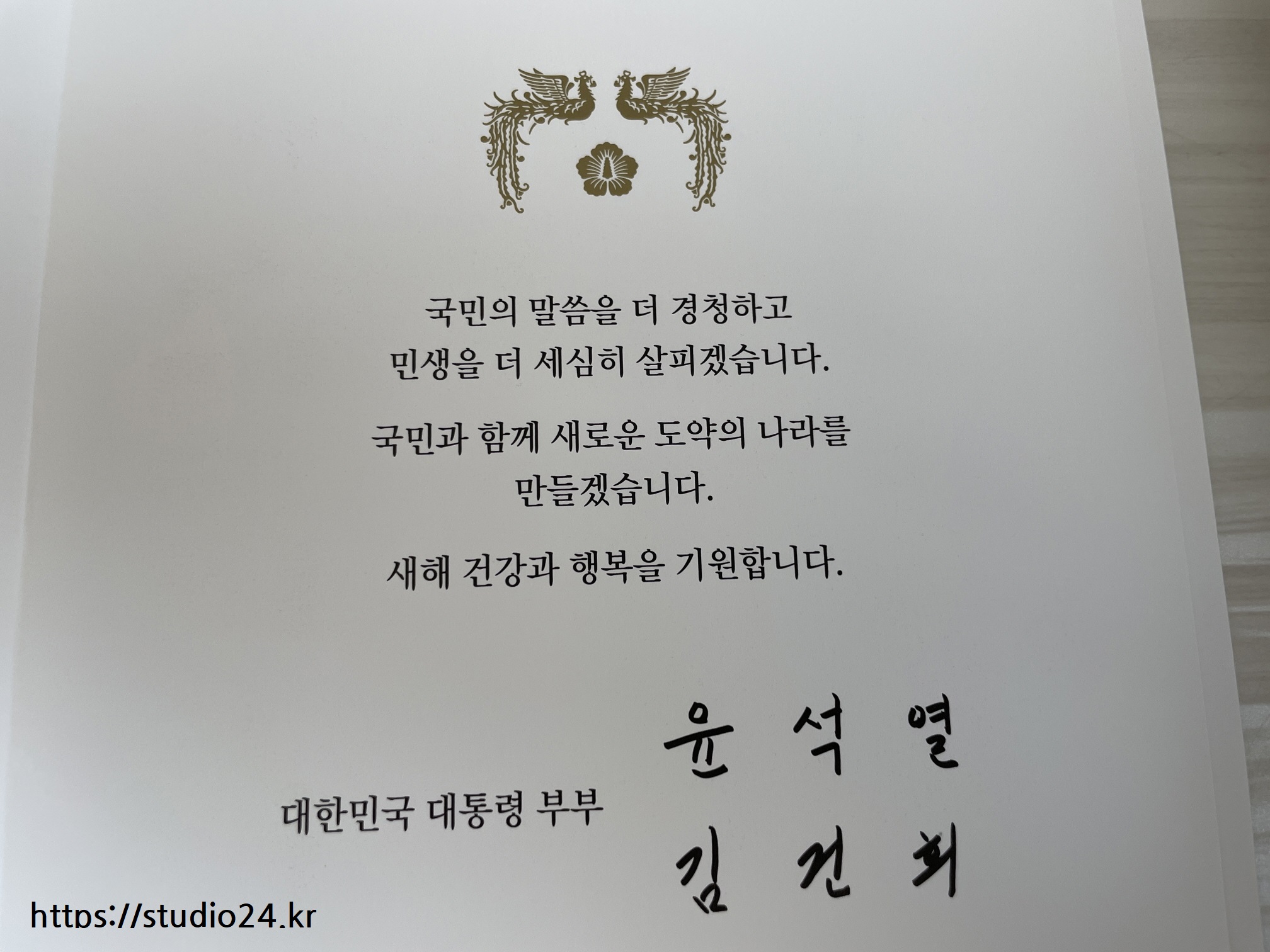 2024년 대통령 신년 연하장을 받았습니다.