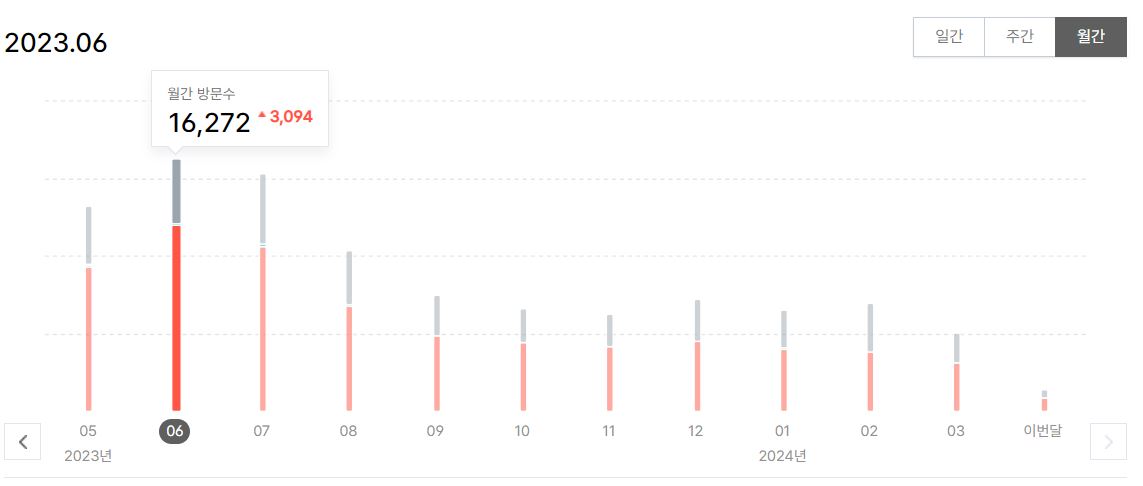 방문자수는 전월 대비 3,094명 증가되었습니다.