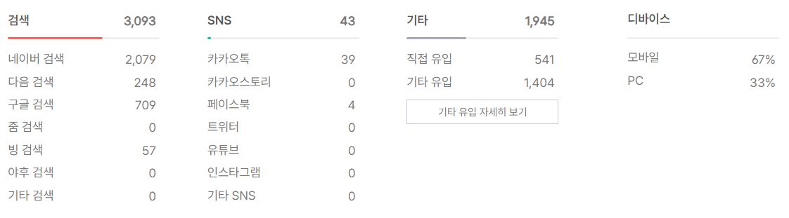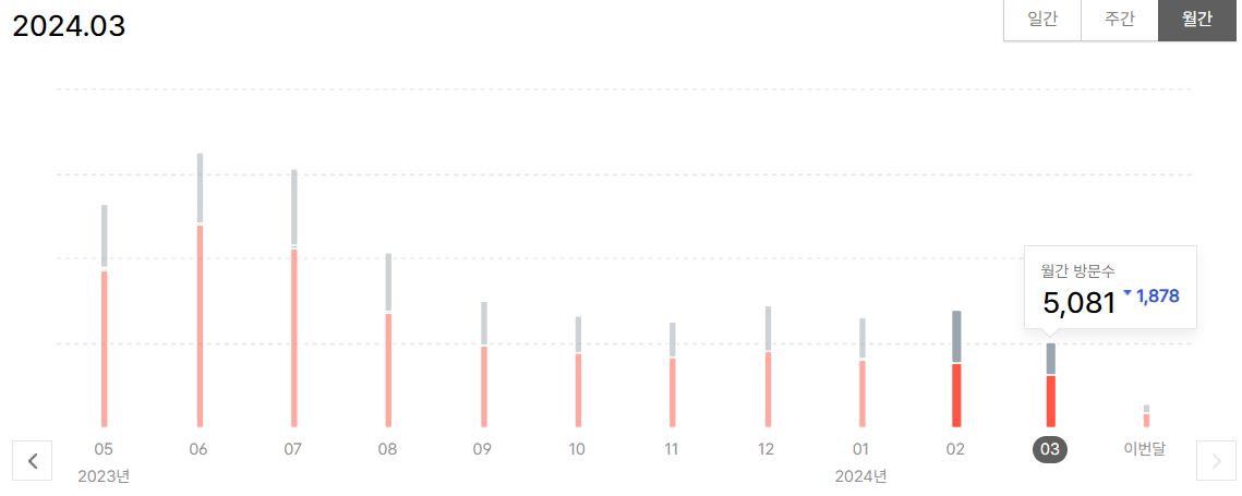 다음 검색이 너무 저조하고, 구글 검색이 빠지면서 월간 방문자가 5천 명이 되었습니다.