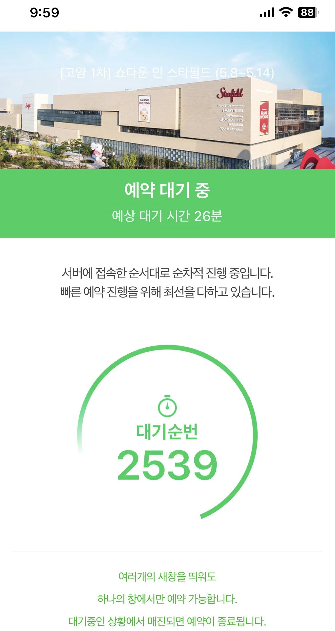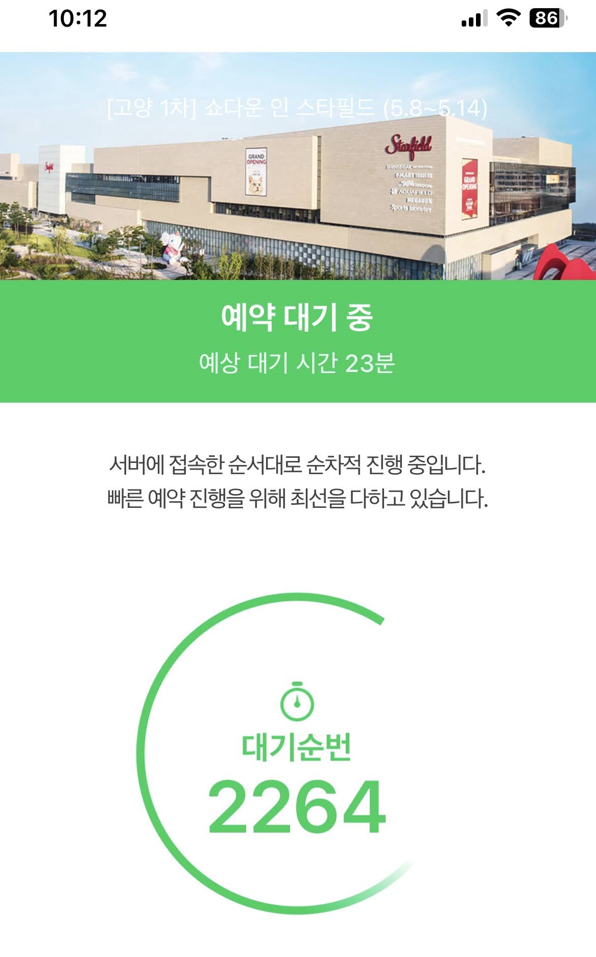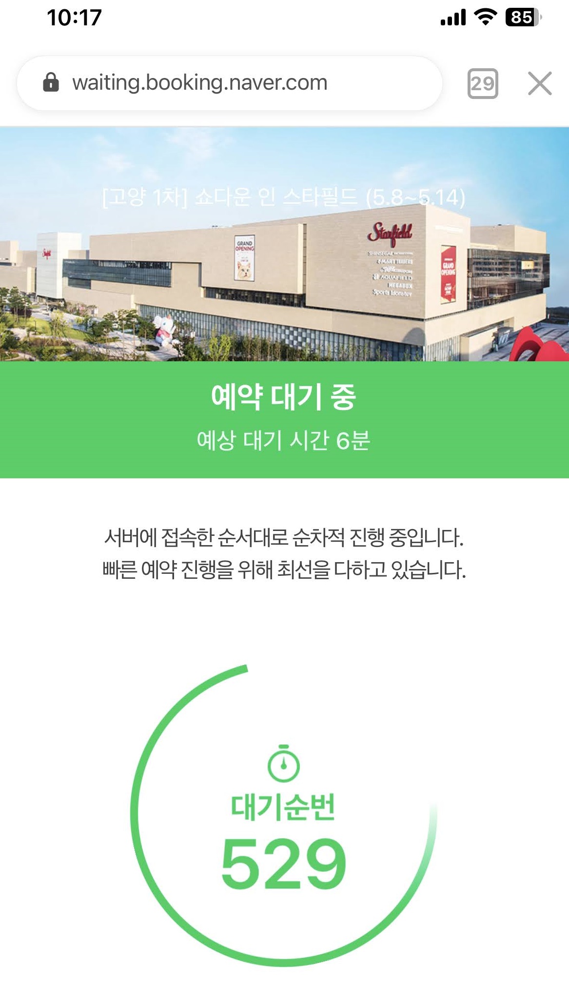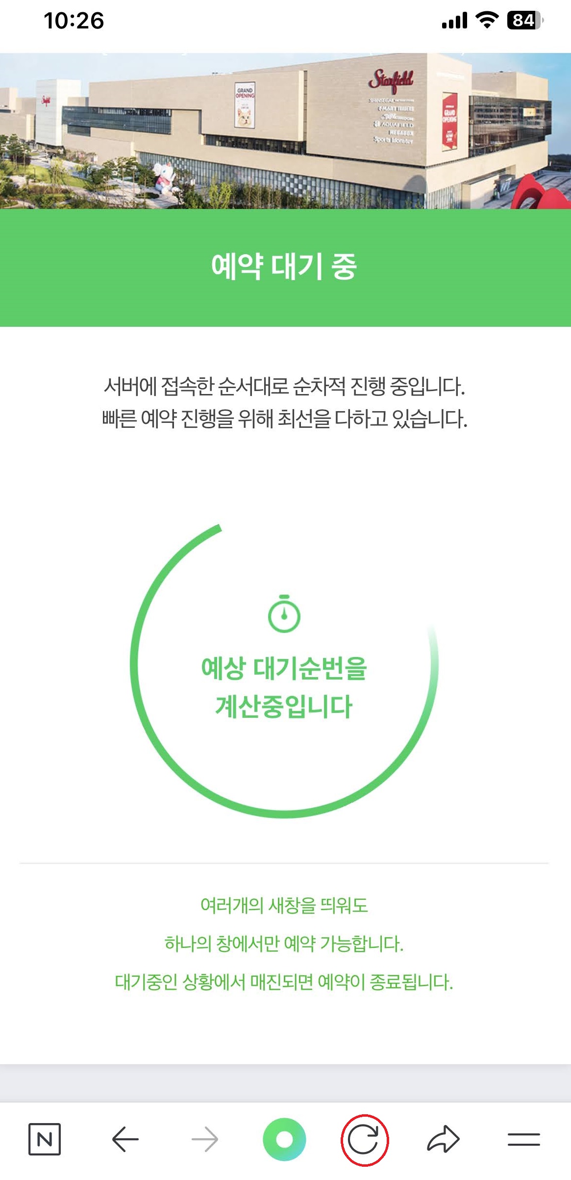다시 새로고침을 눌렀더니 예상 대기순번을 계산중입니다.