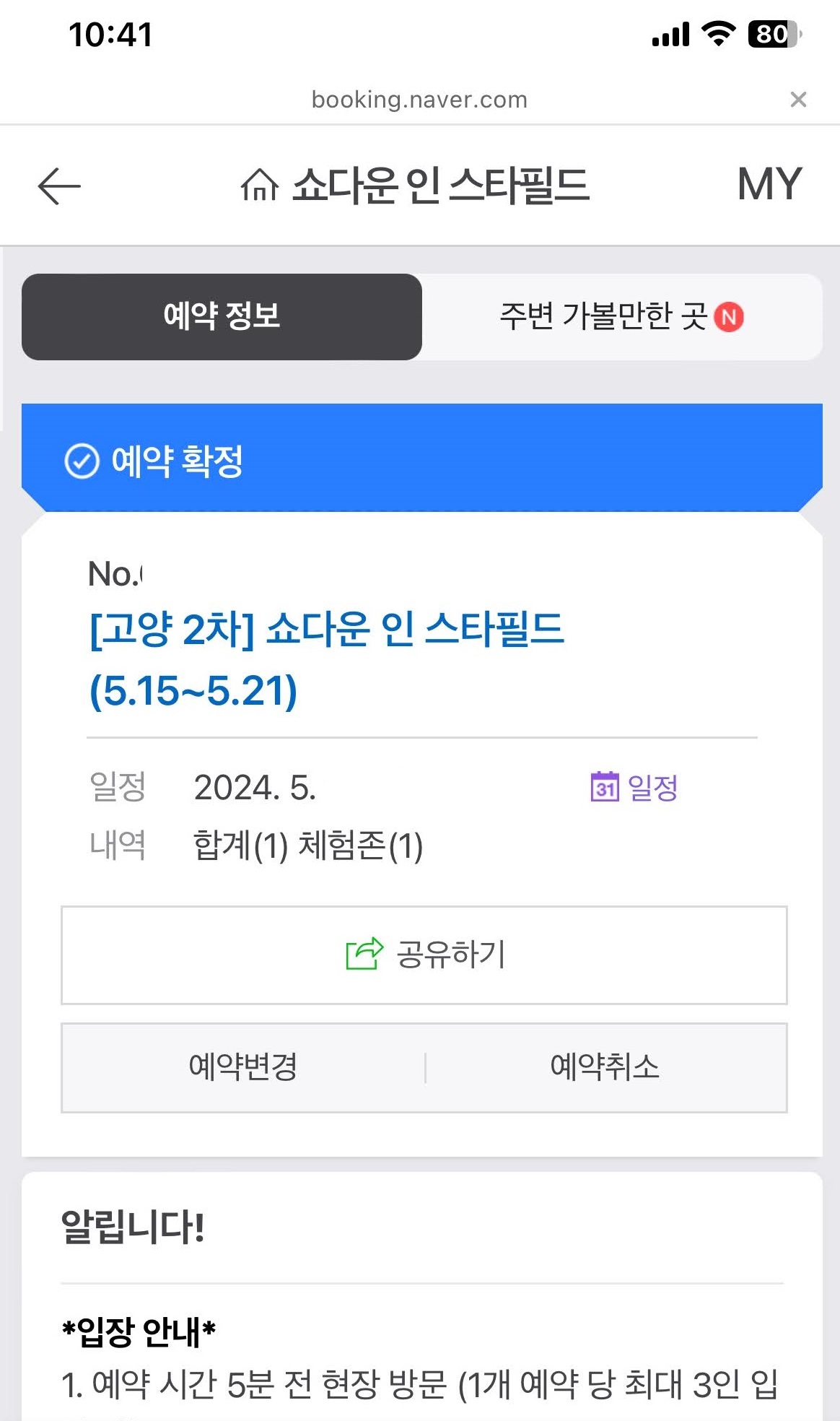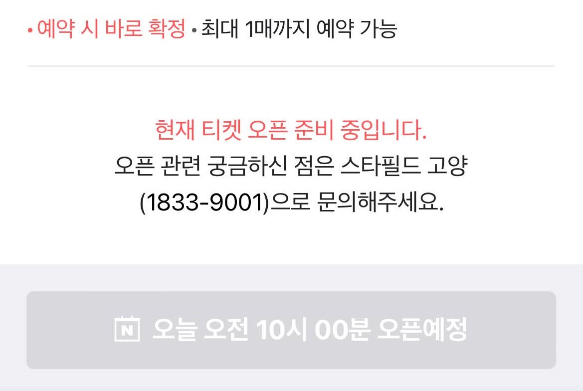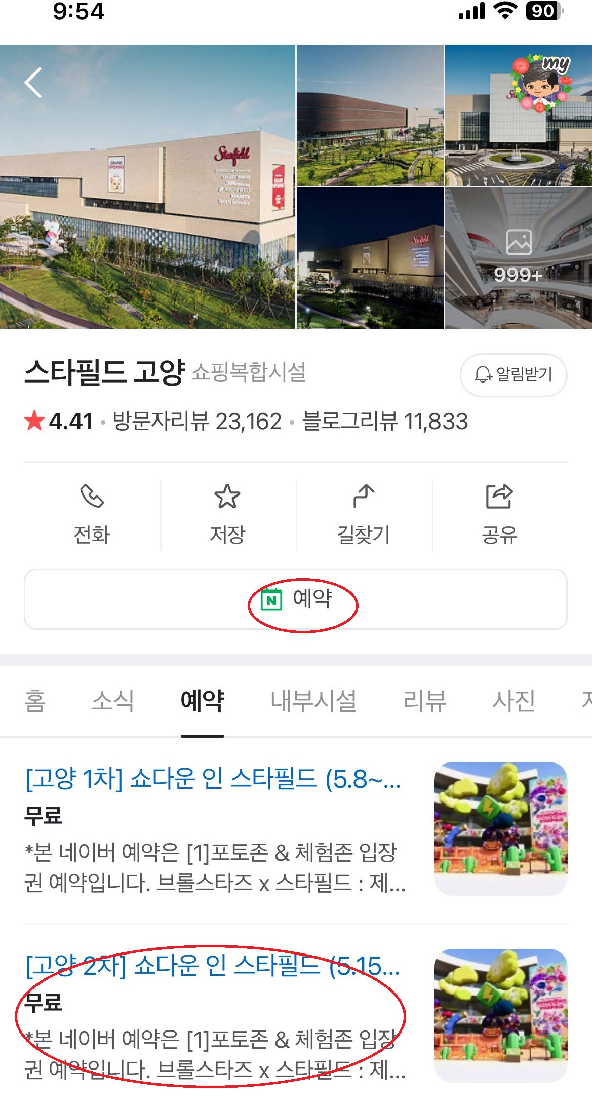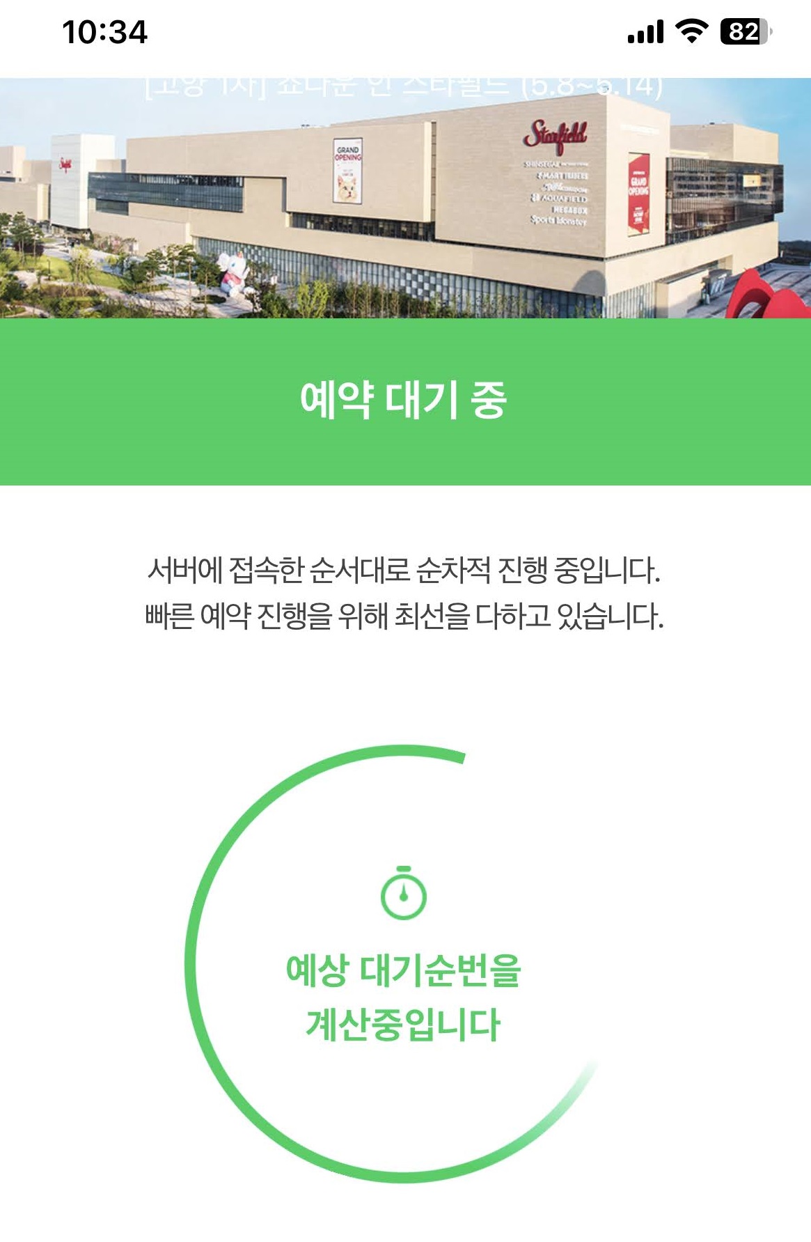 스타필드 고양 예약을 누르면 예약이 진행됩니다.