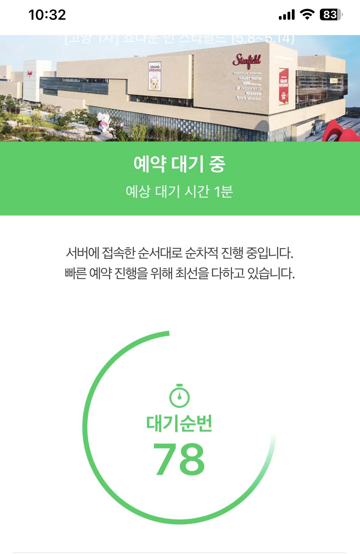 이상하다 싶어 1분을 남기고 예약을 눌러보니 이미 예약 대기