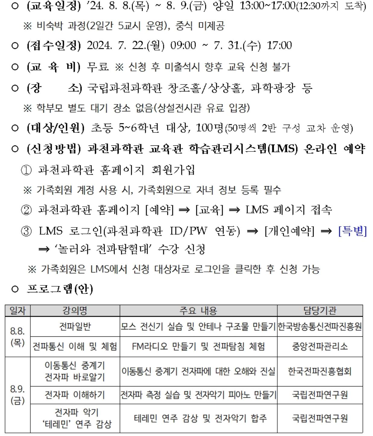 여름방학 '어린이 전파교실' 놀러와 전파 탐험대 신청