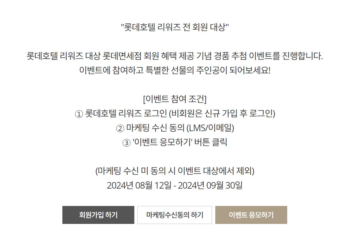 이벤트, 롯데호텔 리워즈 회원 대상 롯데면세점 제휴 경품 이벤트