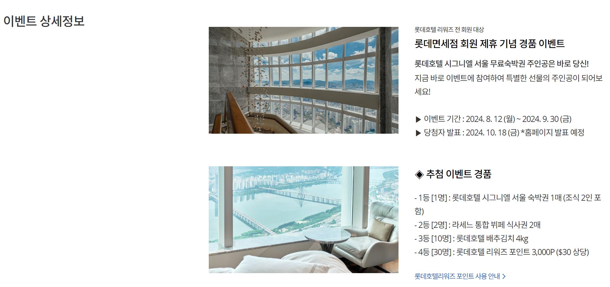 - 1등 [1명] : 롯데호텔 시그니엘 서울 숙박권 1매 (조식 2인 포함)