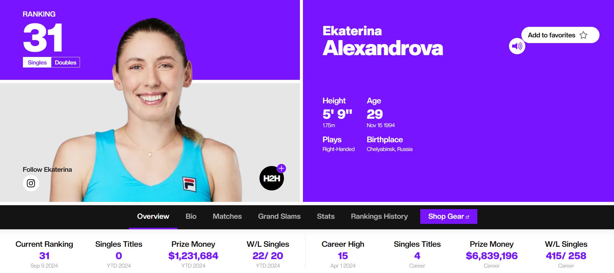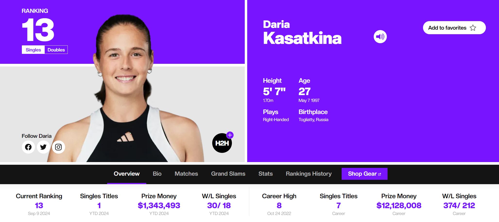 랭킹 13위, 1번 시드로 출전했고, 엠마 라두카누 선수가 1회전, 2회전을 승리한다면 8강에서 만나게 됩니다.