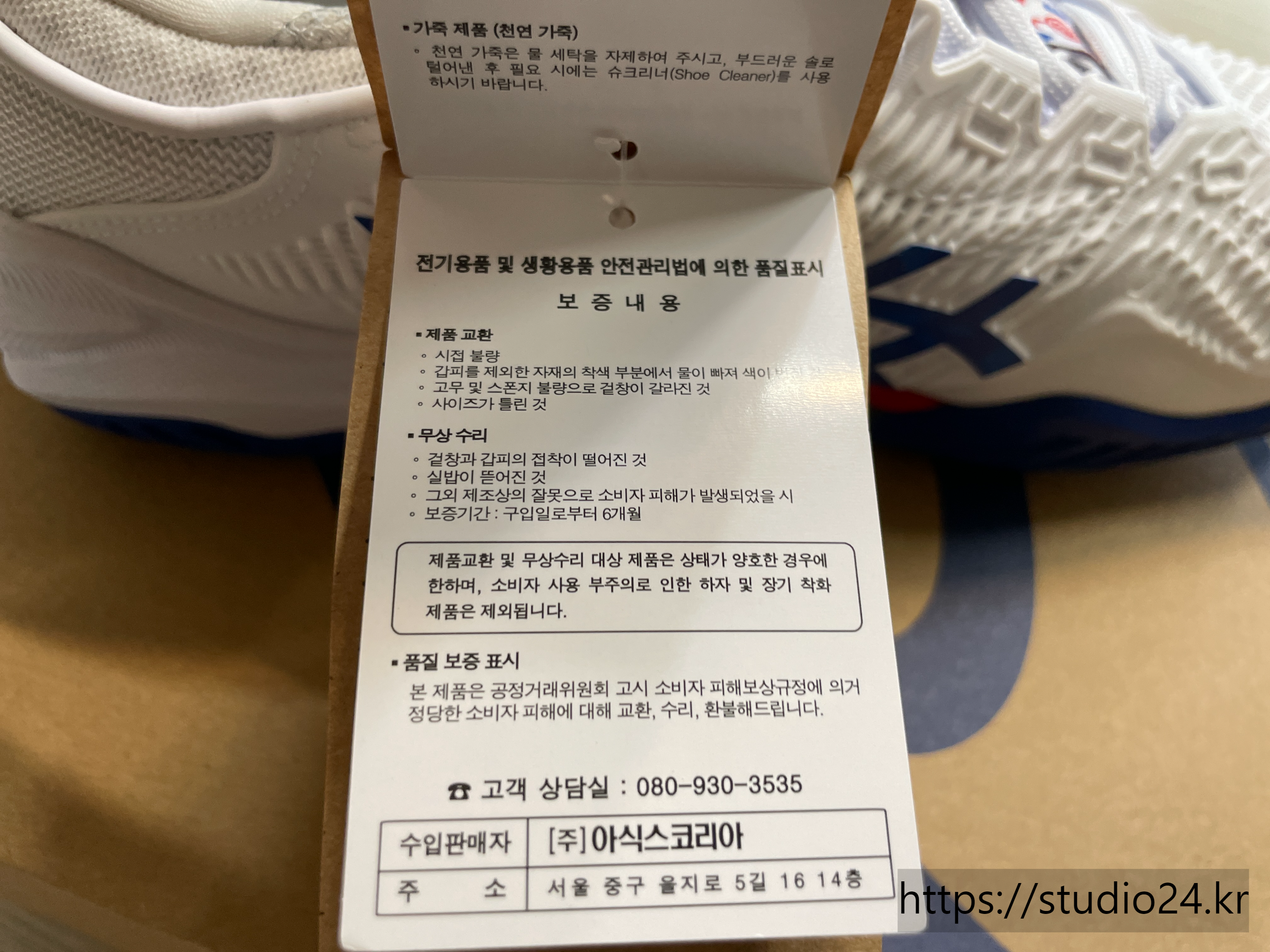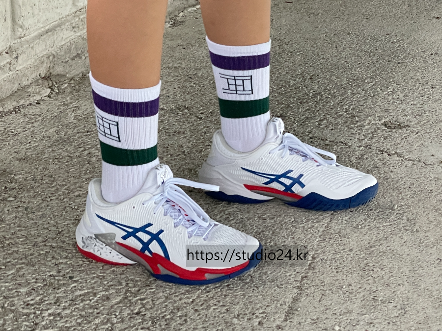 아식스 테니스화에서 가장 상위 레벨의 테니스화이지만, 발을 꽉~ 잡아주는 느낌이 좋다고 합니다.