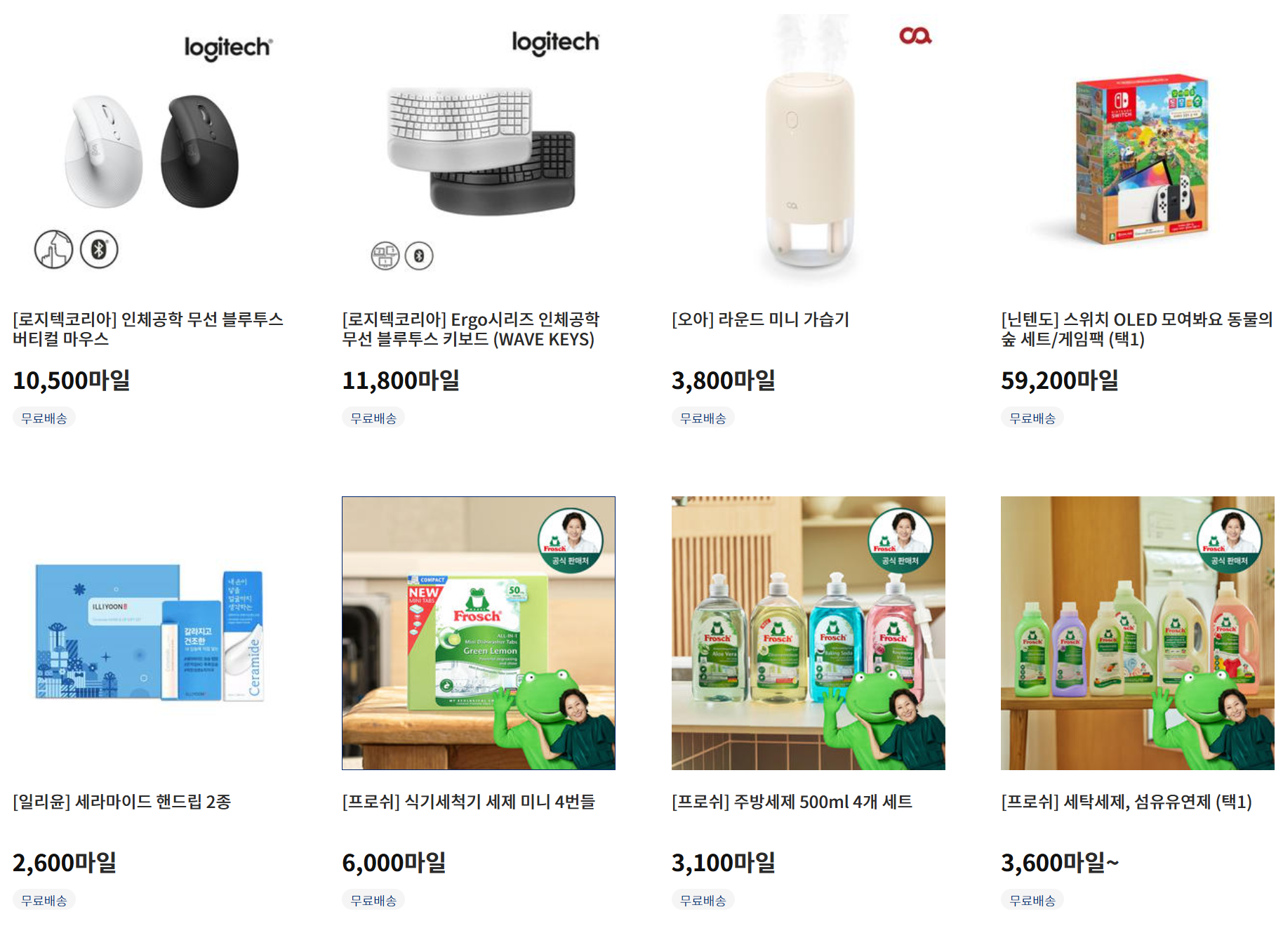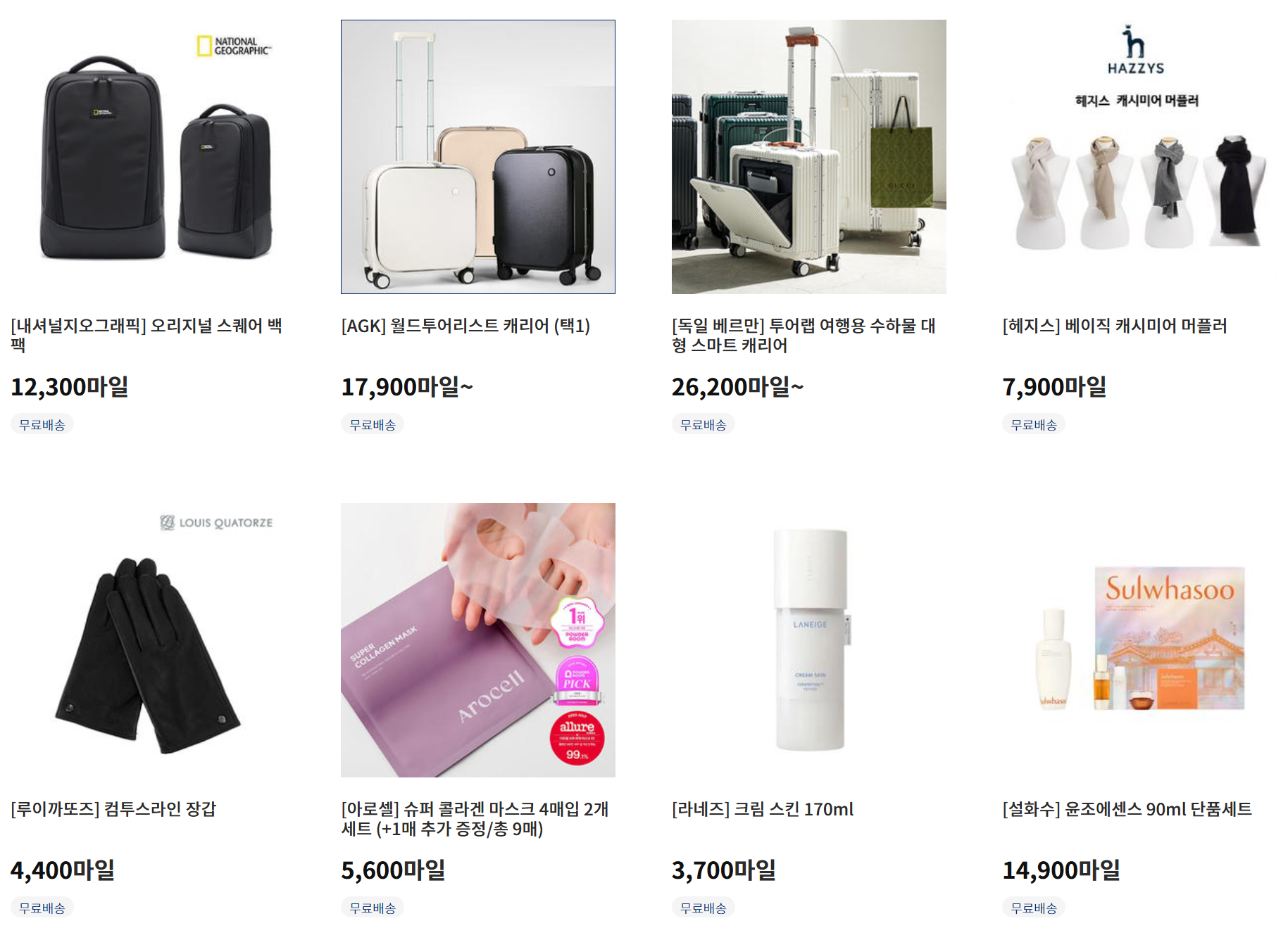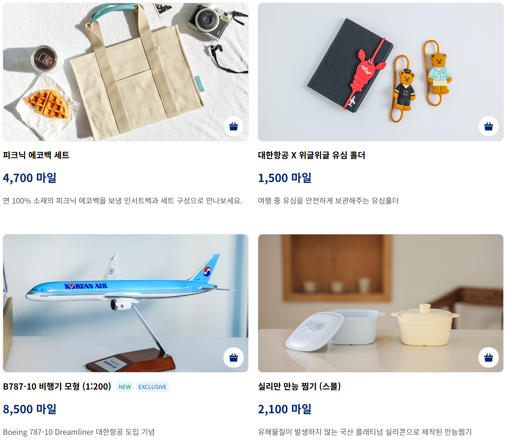 힘들게 모은 마일리지로 피크닉 에코백 세트, 비행기 모형, 만능 찜기, 제동한우를 구입해야 하는 상황입니다.