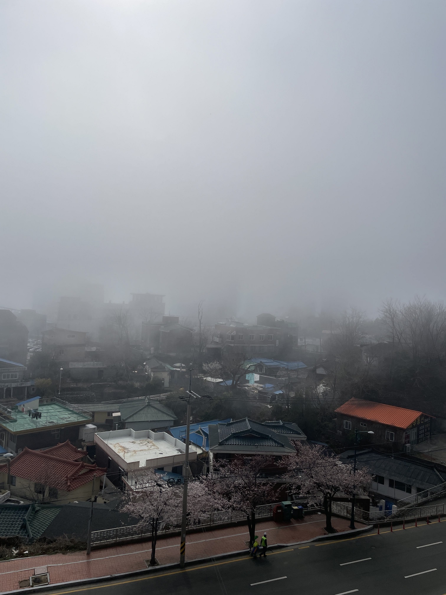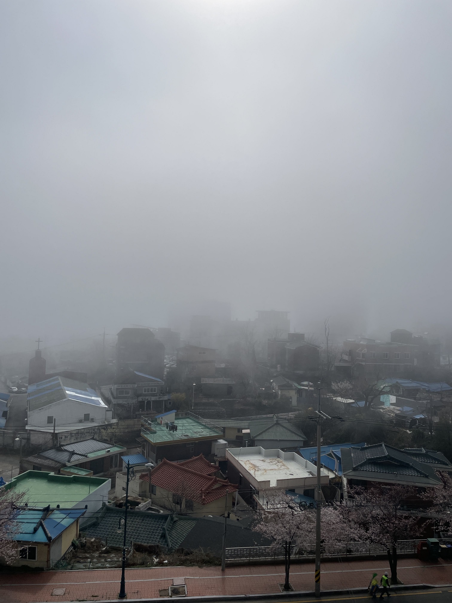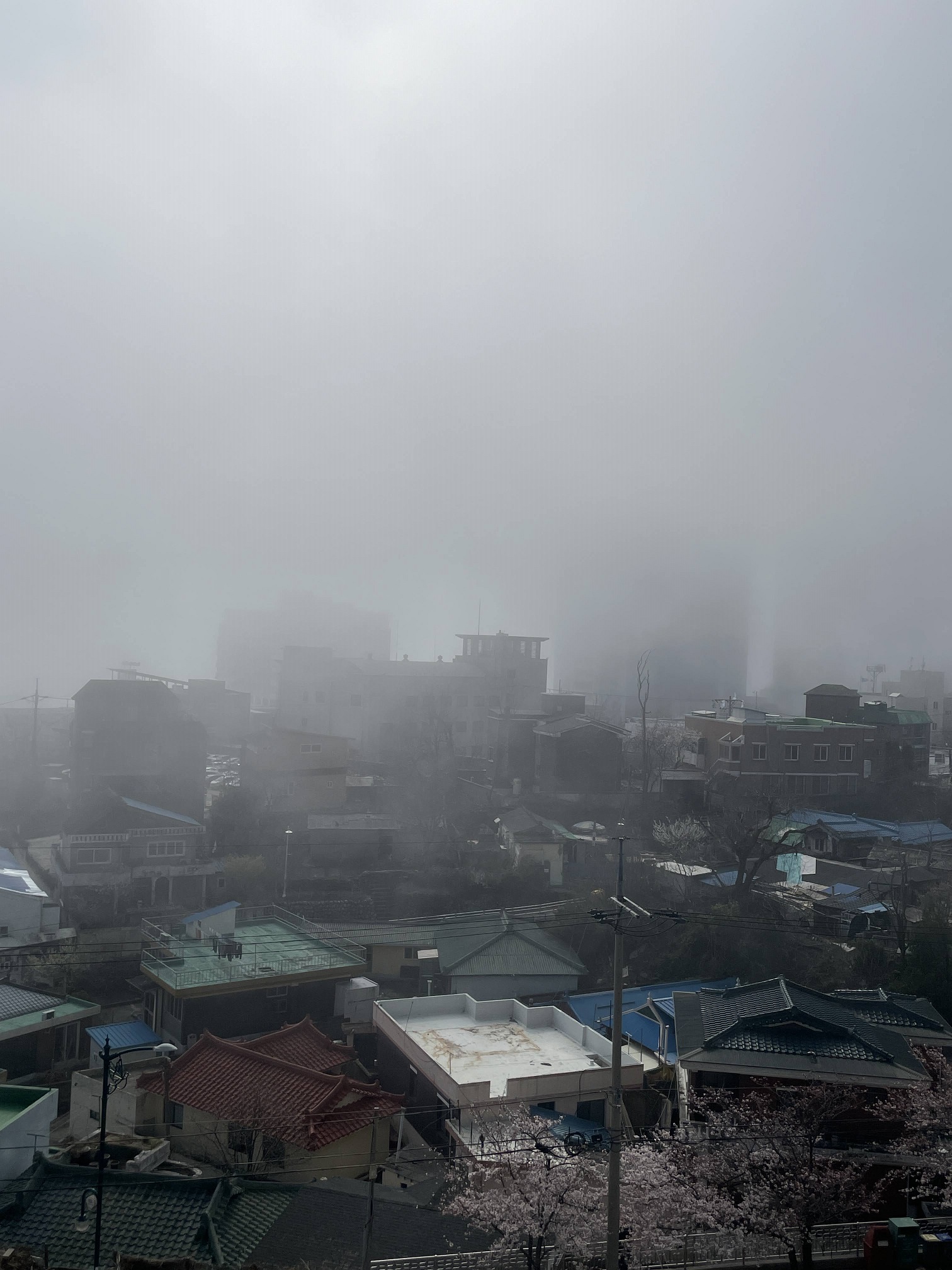 눈앞에 보이던 바다가 사라지고 안개가 차지하고 있어요.