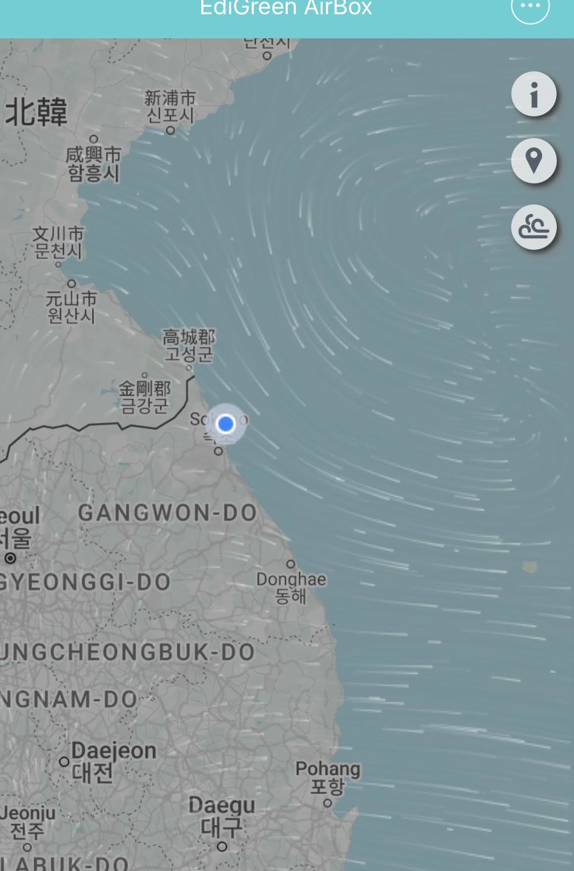 동쪽에서 미세먼지를 흡수하는 거 같이 보입니다.