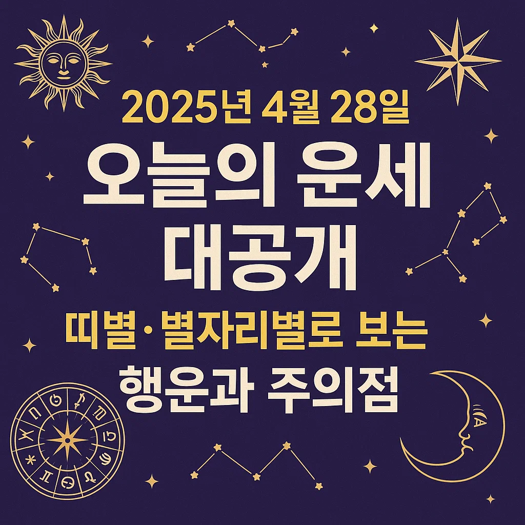 2025년 4월 28일, 한 주의 시작이자 새로운 기운이 흐르는 월요일의 오늘의 운세를 띠별, 별자리별로 꼼꼼히 정리해드립니다.