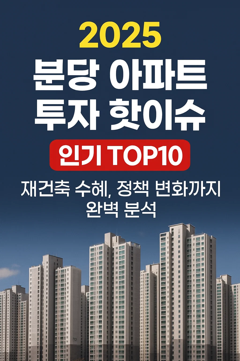 이 글에서는 분당에서 인기 높은 아파트 TOP10, 재건축 수혜 단지, 최근 정책 및 대출 규제, 향후 가격 전망까지 한눈에 정리합니다.