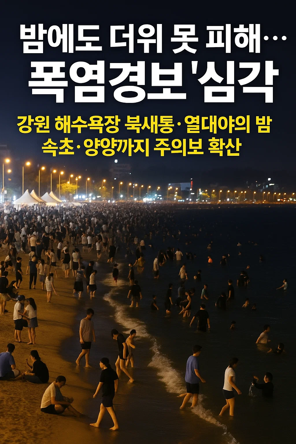 밤에도 더위 못 피해…폭염경보 ‘심각’, 강원 해수욕장 북새통·열대야의 밤: 속초·양양까지 주의보 확산