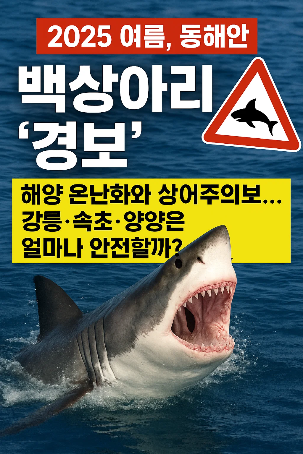 2025년 여름, 한국 동해 바다에서 식인 상어(백상아리) 및 대형 상어의 잦은 출몰로 인해 ‘상어 주의보’가 현실화되고 있습니다.