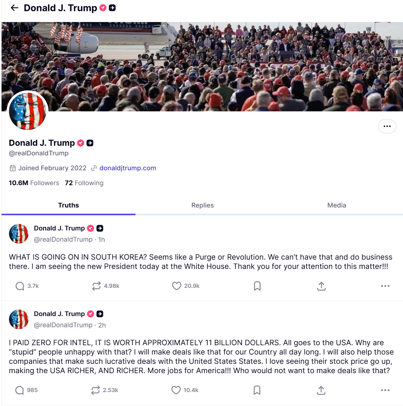 - 트럼프 대통령의 8월 25일 트루스 소셜 계정 원문: