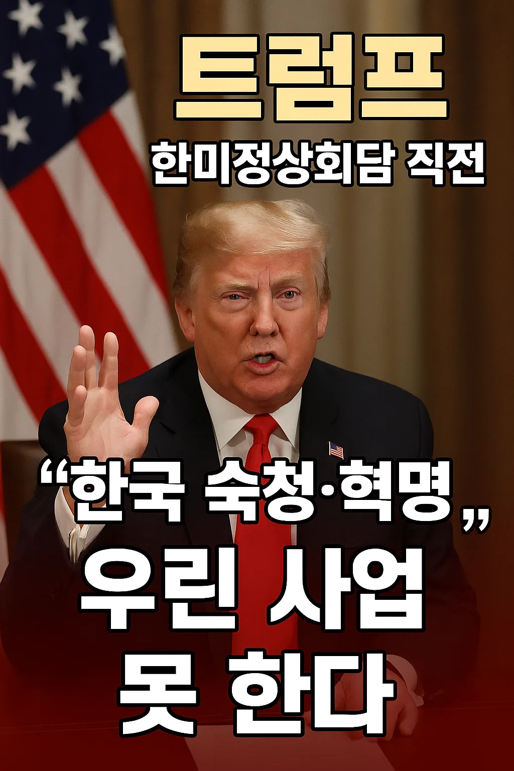 트럼프 대통령의 "한국은 숙청 또는 혁명이 진행 중, 사업 불가" 발언은 한미 정상회담을 앞두고 외교·경제 전반에 적지 않은 충격파를 던지고 있습니다.