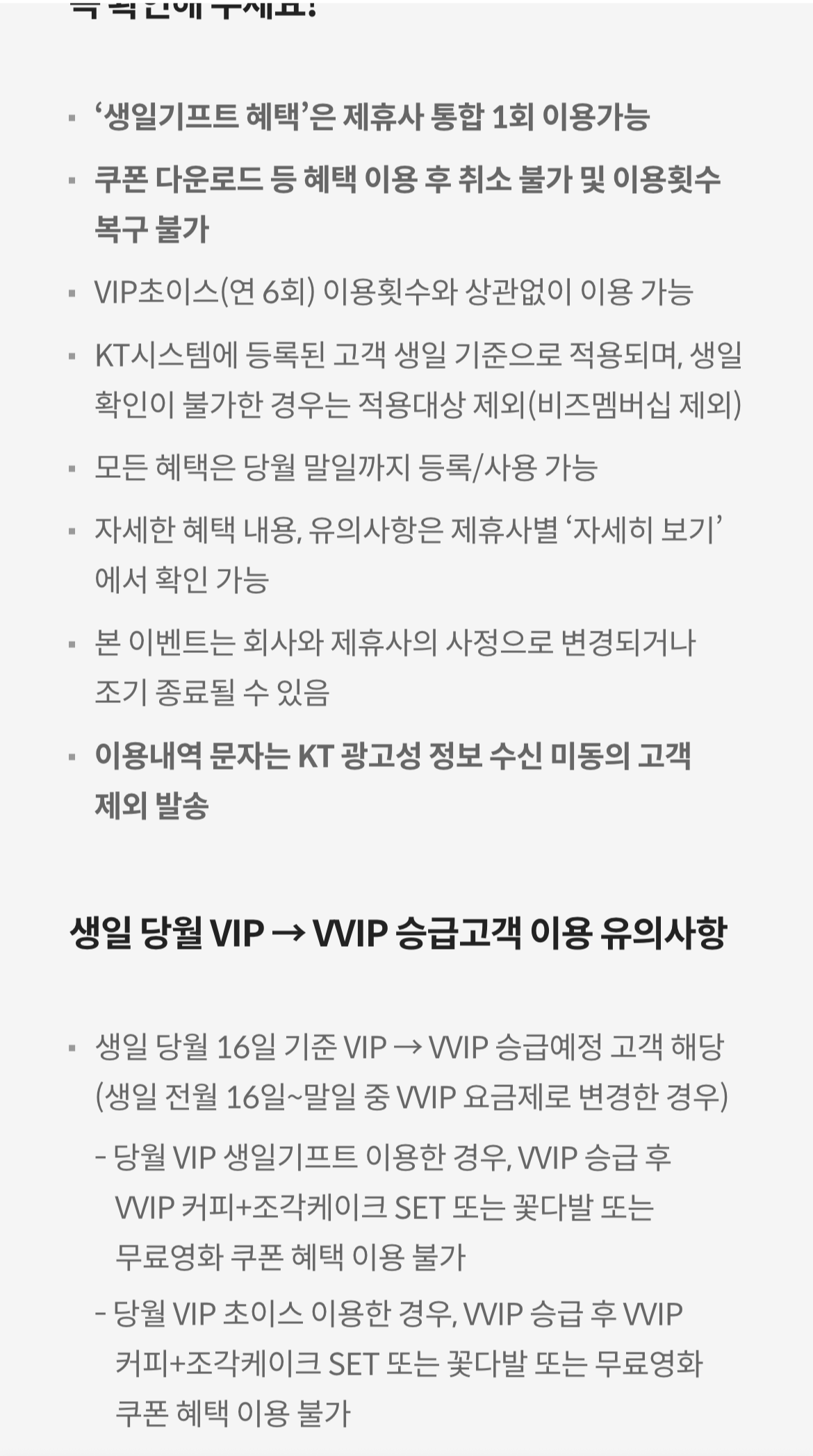 KT VIP 고객님게 드리는 생일 기프트 혜택!