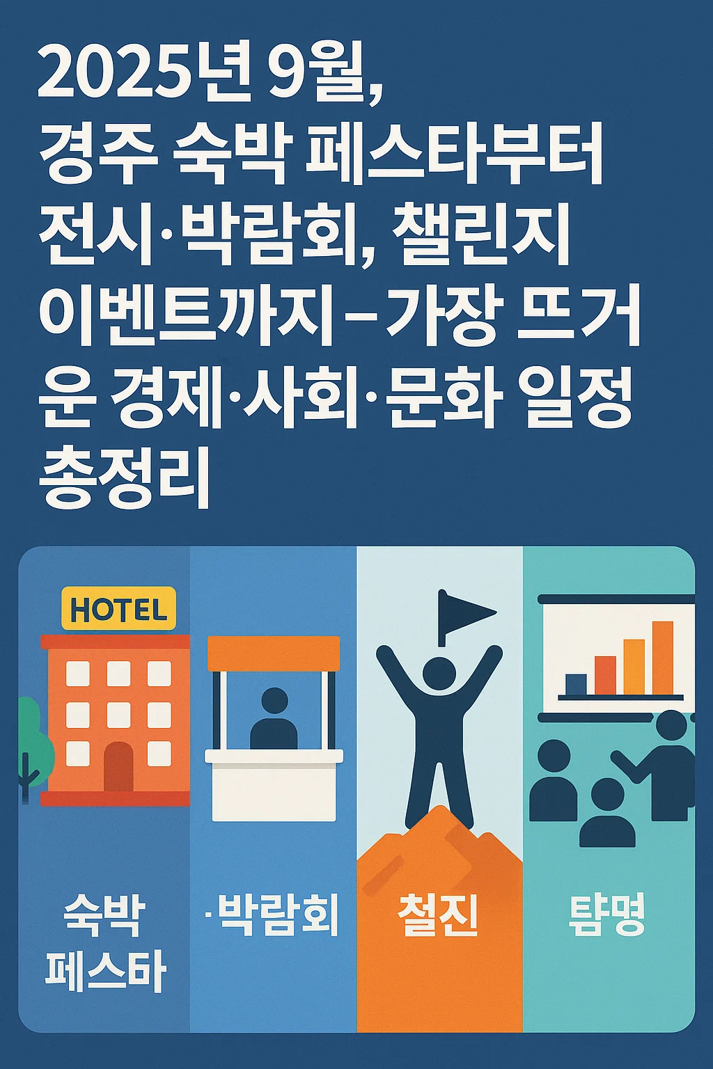 2025년 9월은 ‘APEC 경주 숙박 페스타’ ‘서울/지방 대형 박람회’ ‘참여 챌린지 이벤트’ 등 다양한 분야로 활력이 넘치는 시기입니다.