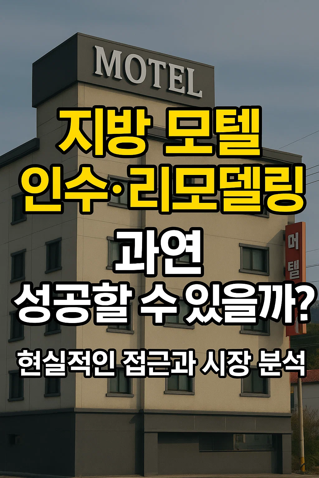 지방 모텔 인수 및 리모델링 사업은 단순 시설 개선에 그치지 않고, 철저한 시장 분석과 현장 데이터, 차별화 전략, 중장기 안목을 바탕으로 해야 성공할 수 있습니다.