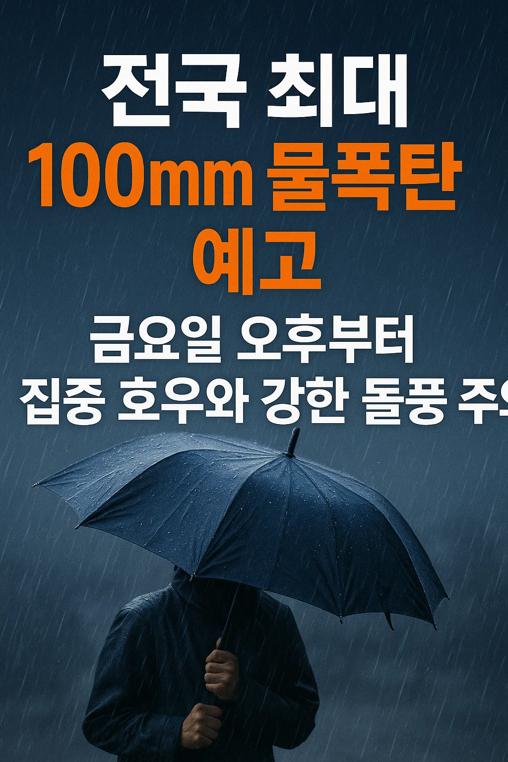 전국 최대 100mm 물폭탄 예고, 금요일 오후부터 집중 호우와 강한 돌풍 주의