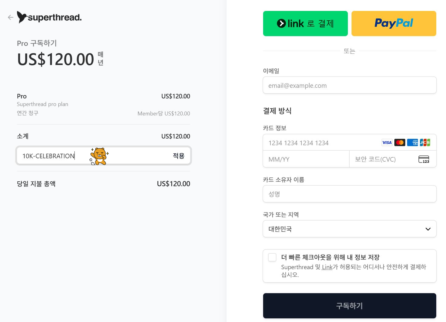 프로모션 코드는 10k-celebration