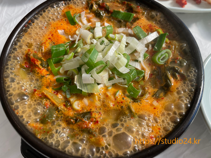 주문한 우거지 순대국이 나왔어요.
