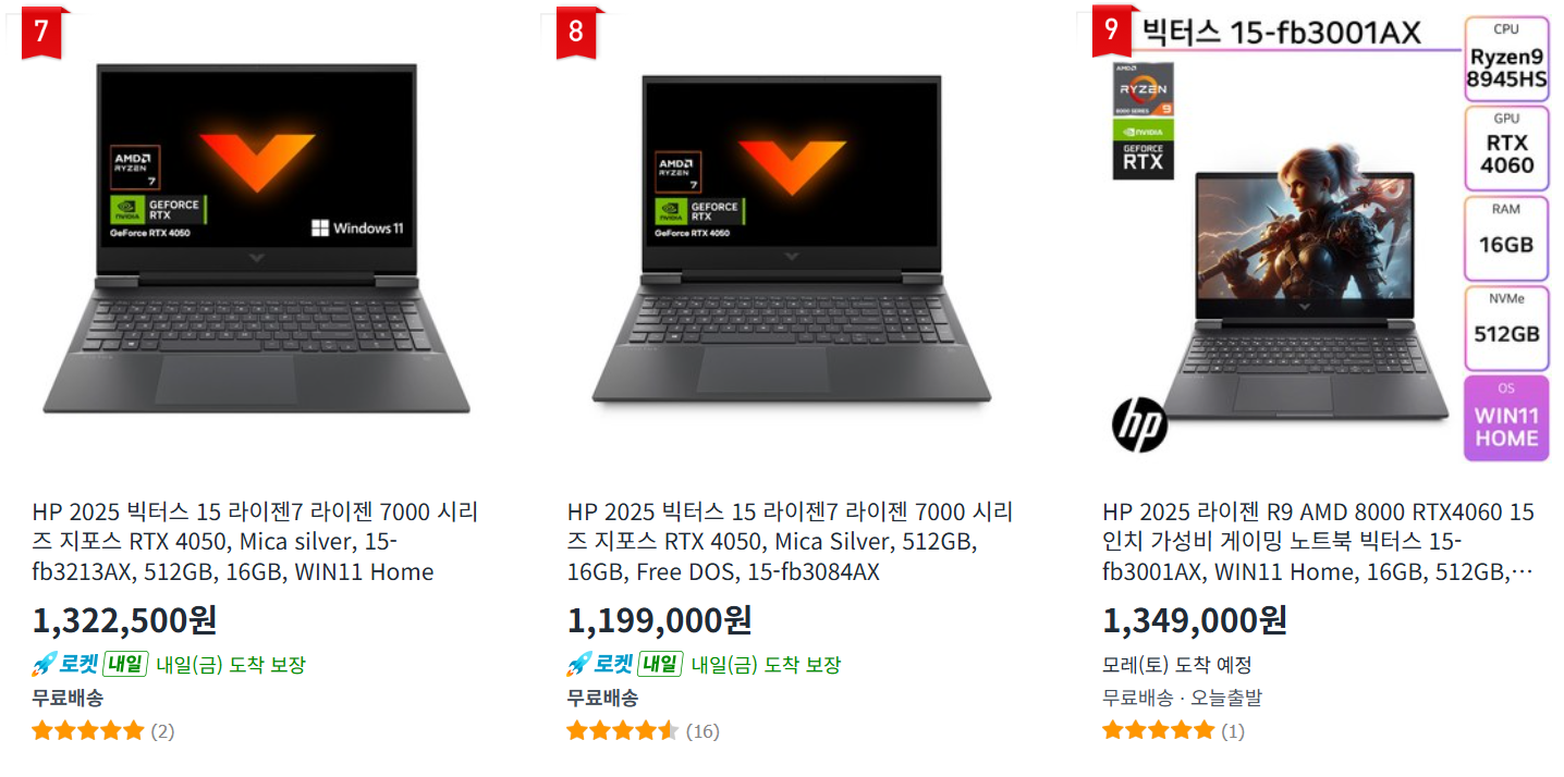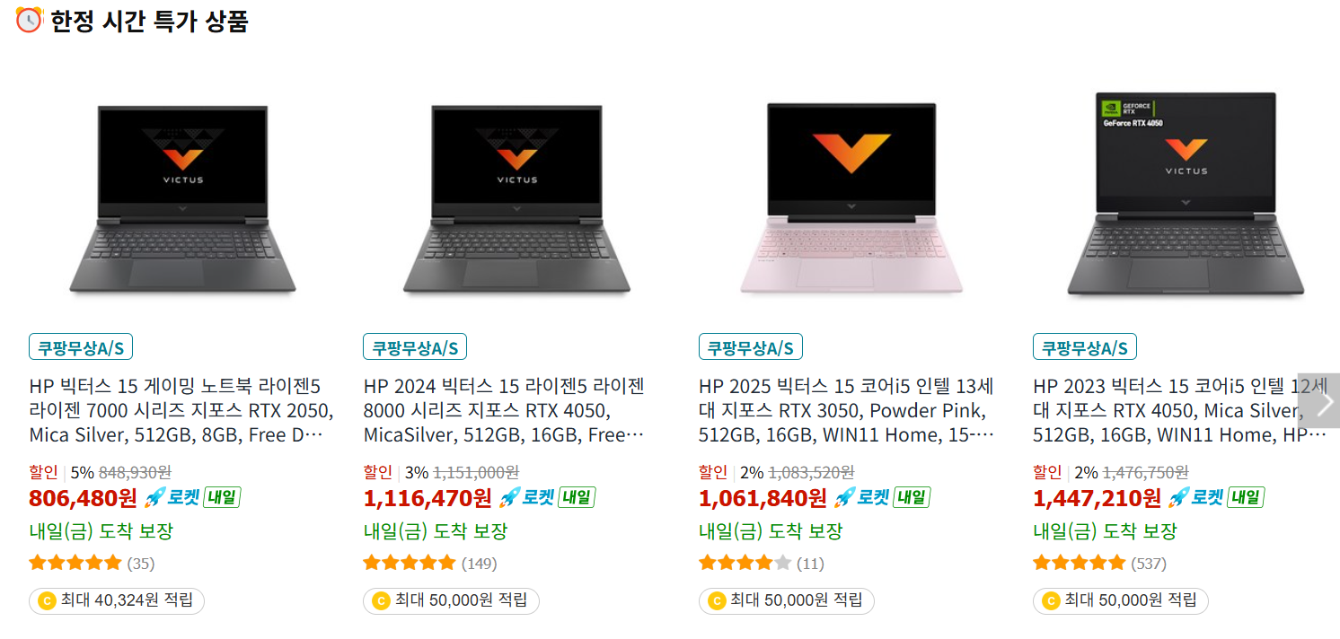 쿠팡에서 HP 2025 라이젠 R9 AMD 8000 RTX4060 15인치 가성비 게이밍 노트북 빅터스 15-fb3001AX 구매하고 더 많은 혜택을 받으세요! 지금 할인중인 다른 노트북 제품도 바로 쿠팡에서 확인할 수 있습니다.