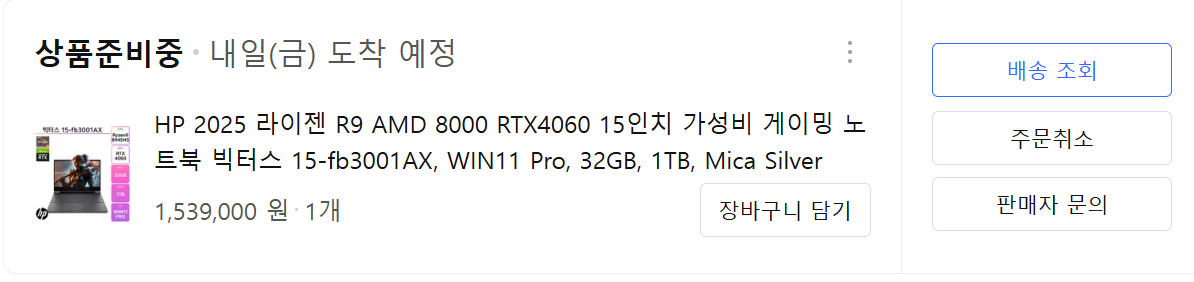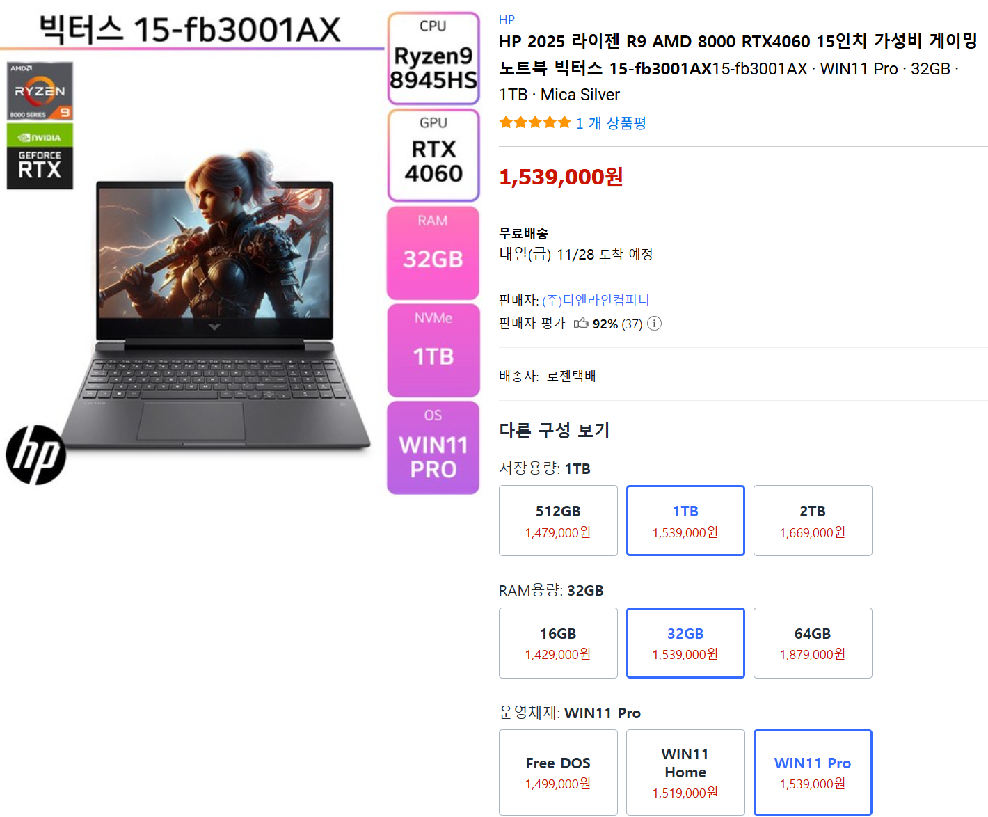 결국 고민하다, 라이젠9 8000시리즈 RTX 4060, 1TB, 32GB, WIN 11 PRO 제품 선택