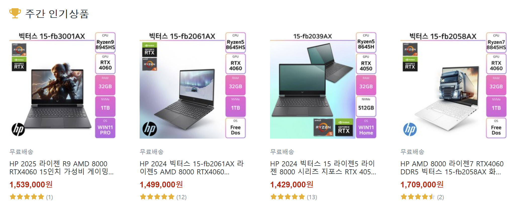 오멘 시리즈와 빅터스 제품군으로 좁혀지기 시작합니다.