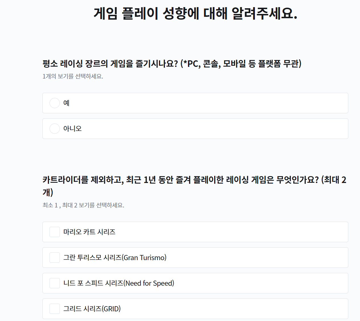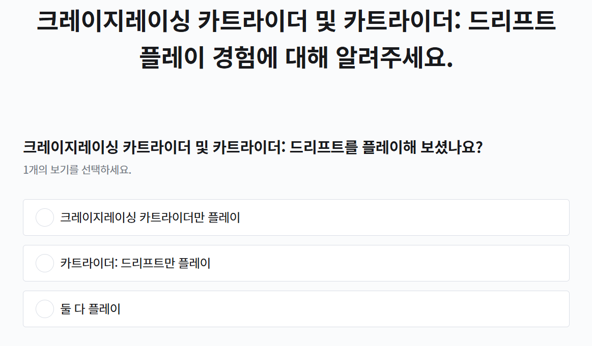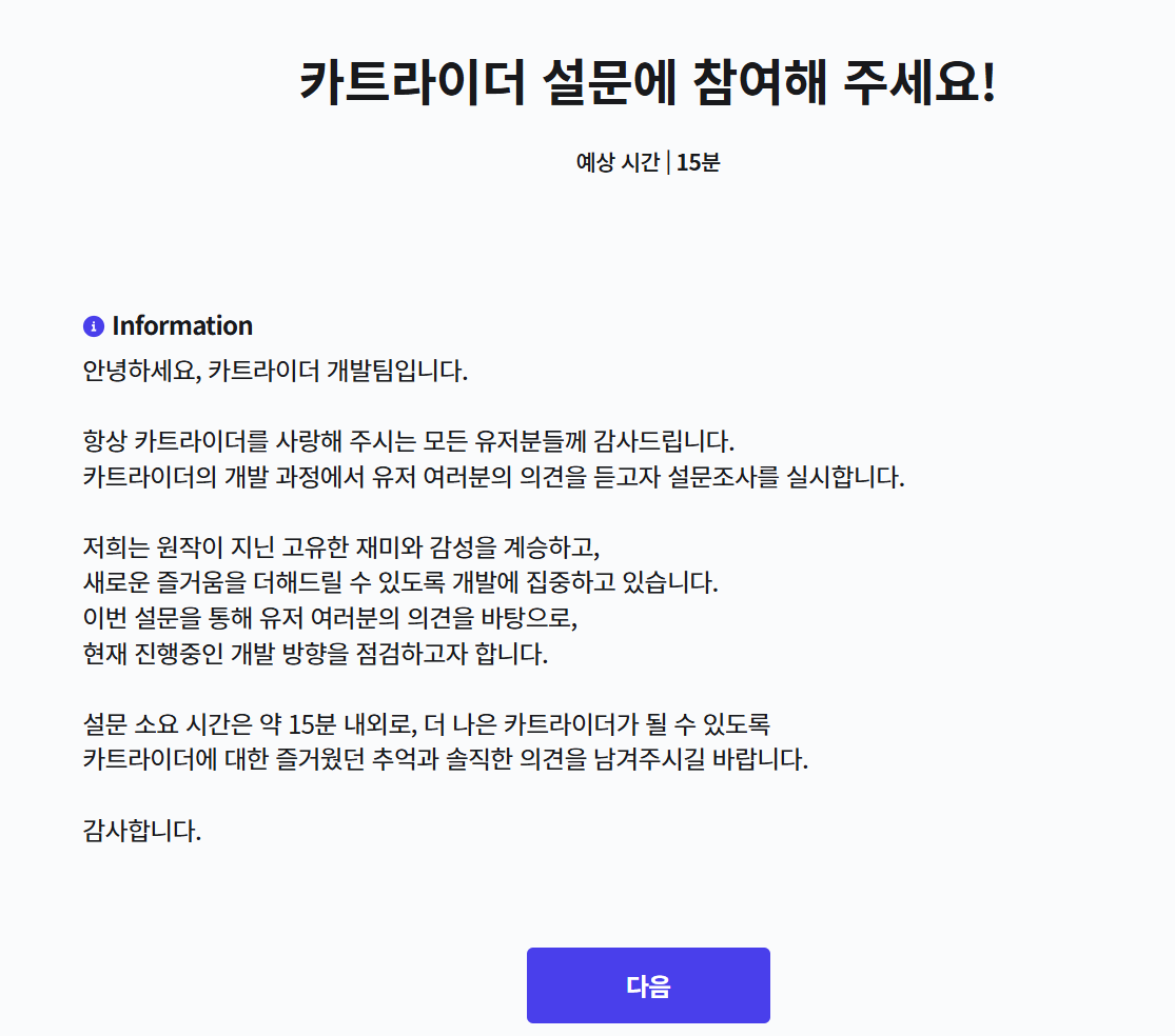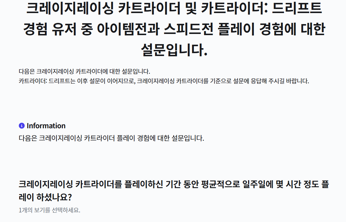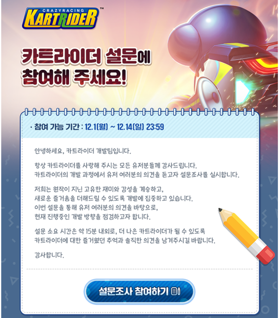카트라이더 개발팀이 설문조사를 실시합니다.