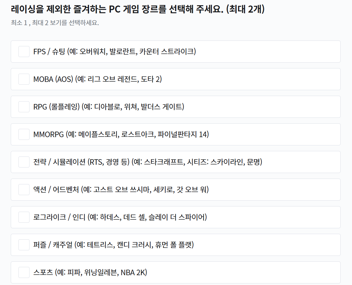 개발 과정에서 의견을 듣고자 설문조사를 진행하고 있어요.