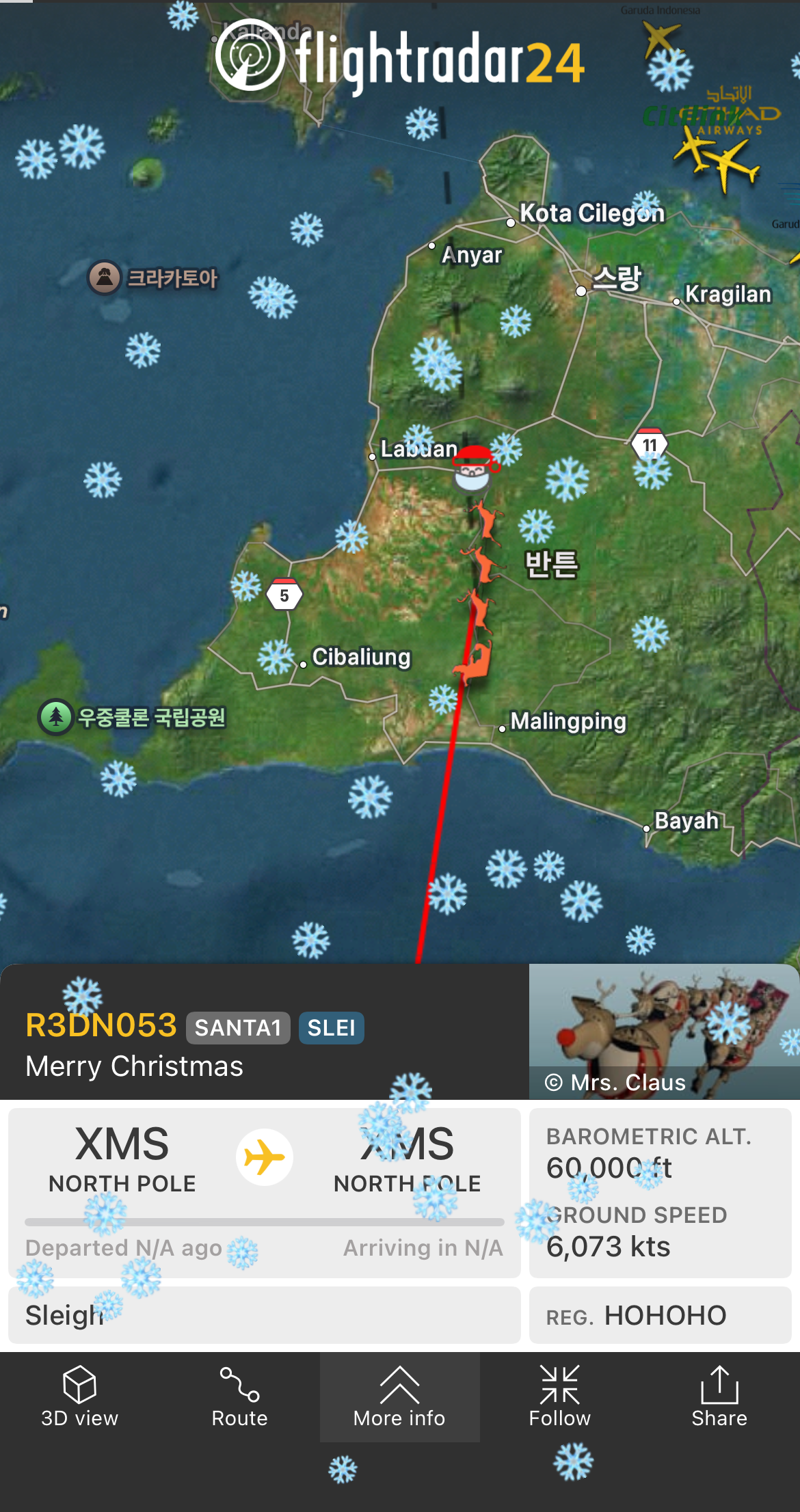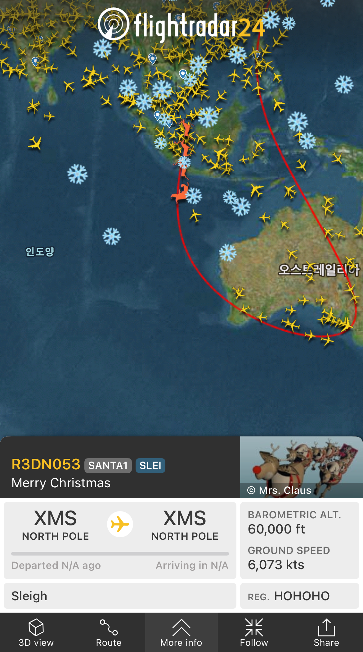 올해도 역시 산타 추적은 Flightradar24