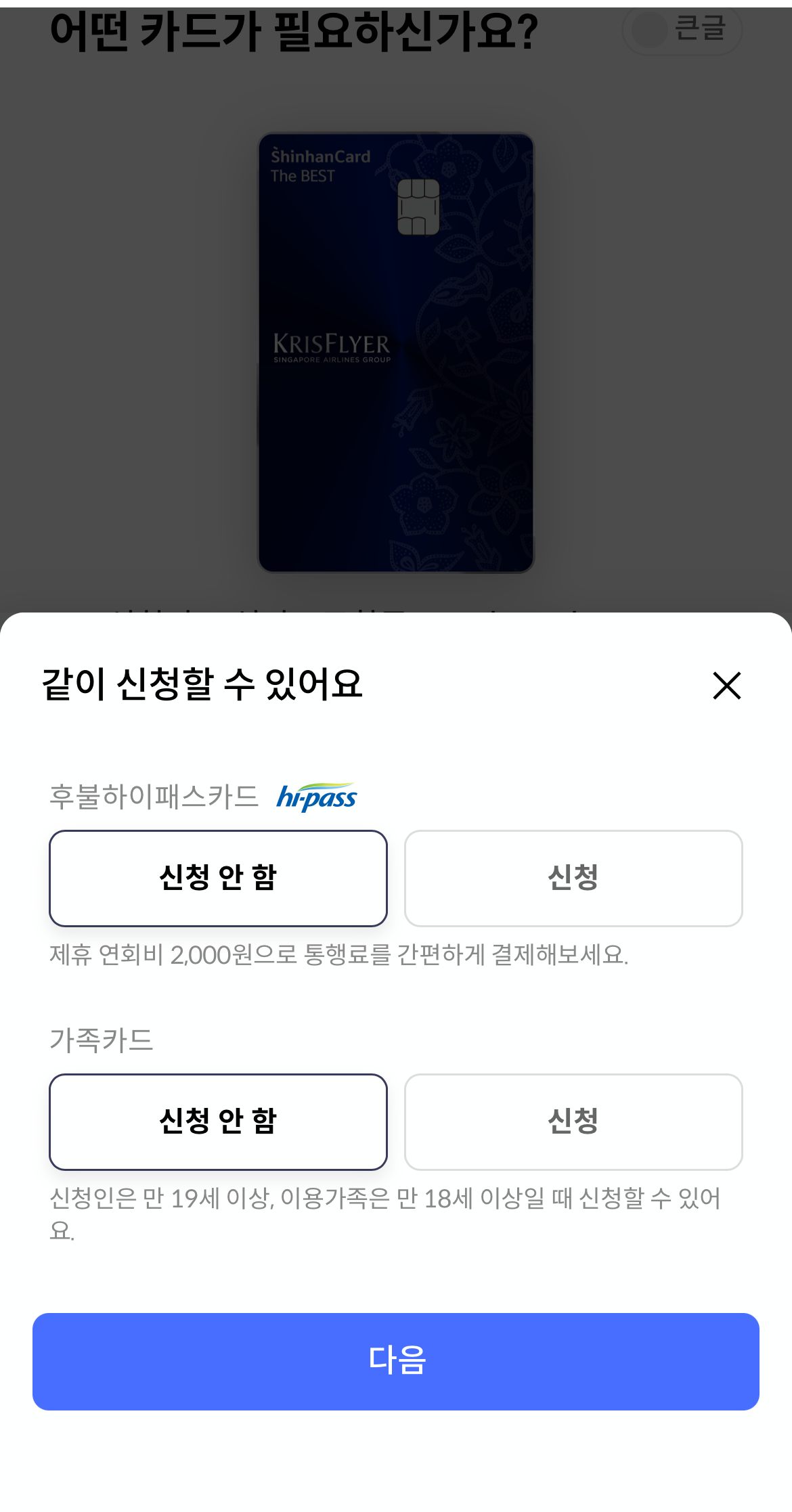 항공 포인트도 적립해야 하고, 싱가포르항공을 이용할 계획을 가지고 있기에 주저 없이 신청해 봅니다.