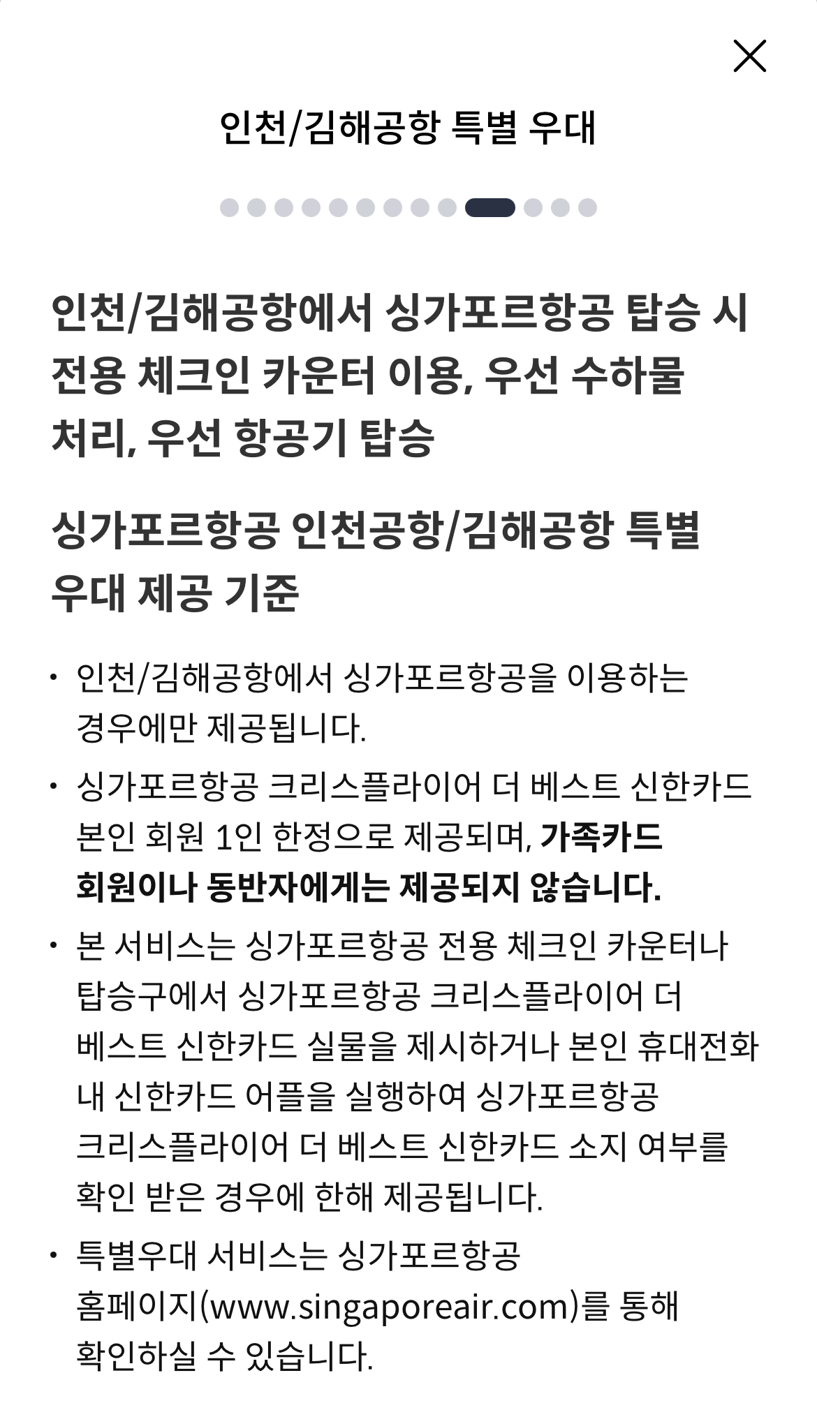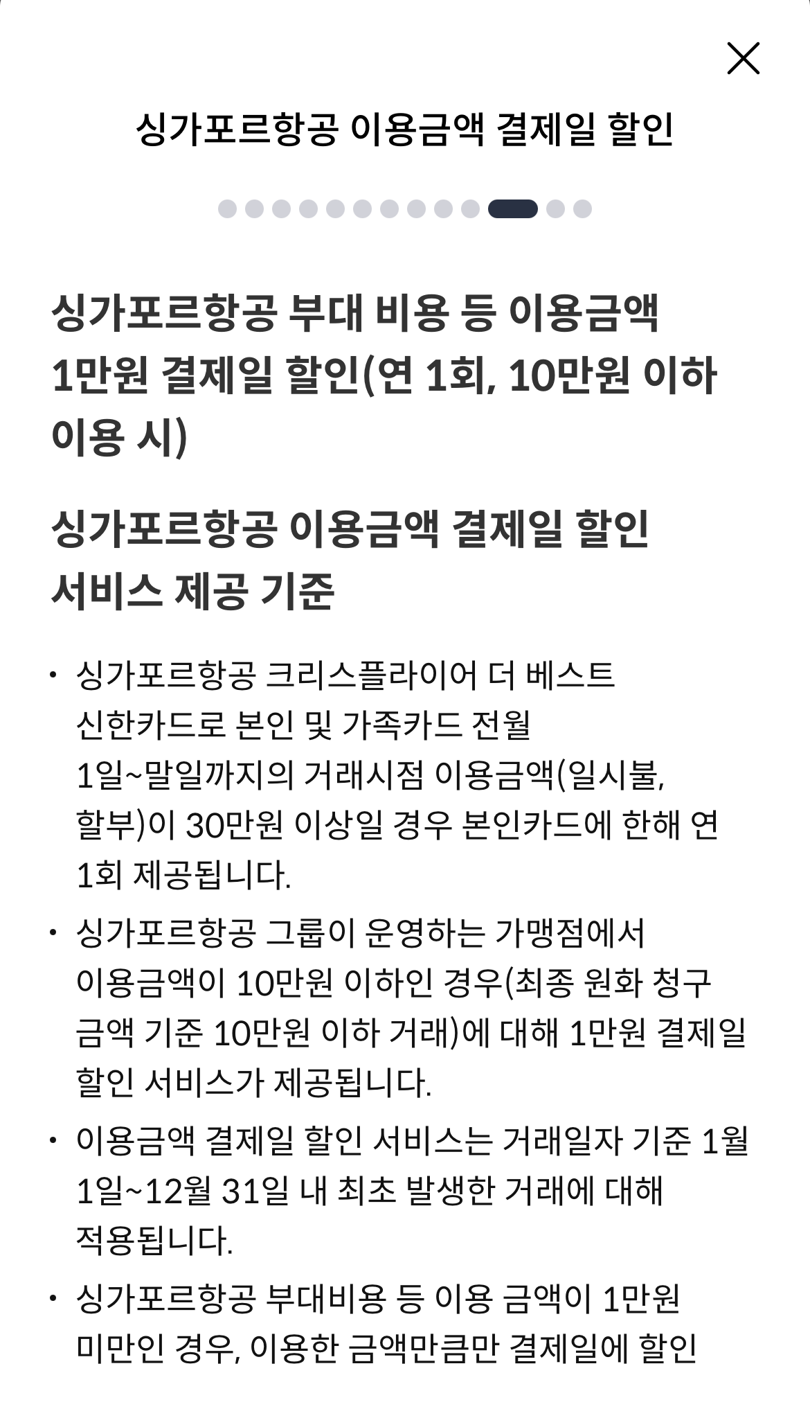 싱가포르항공 그룹이 운영하는 가맹점에서 10만원 이하인 경우 1만원 결제 할인