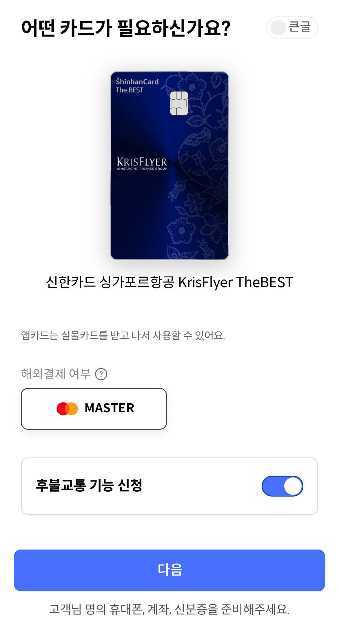 정보값을 입력하면 항공사에서 확인 후 승인을 눌러야 카드 발급이 된다고 합니다.