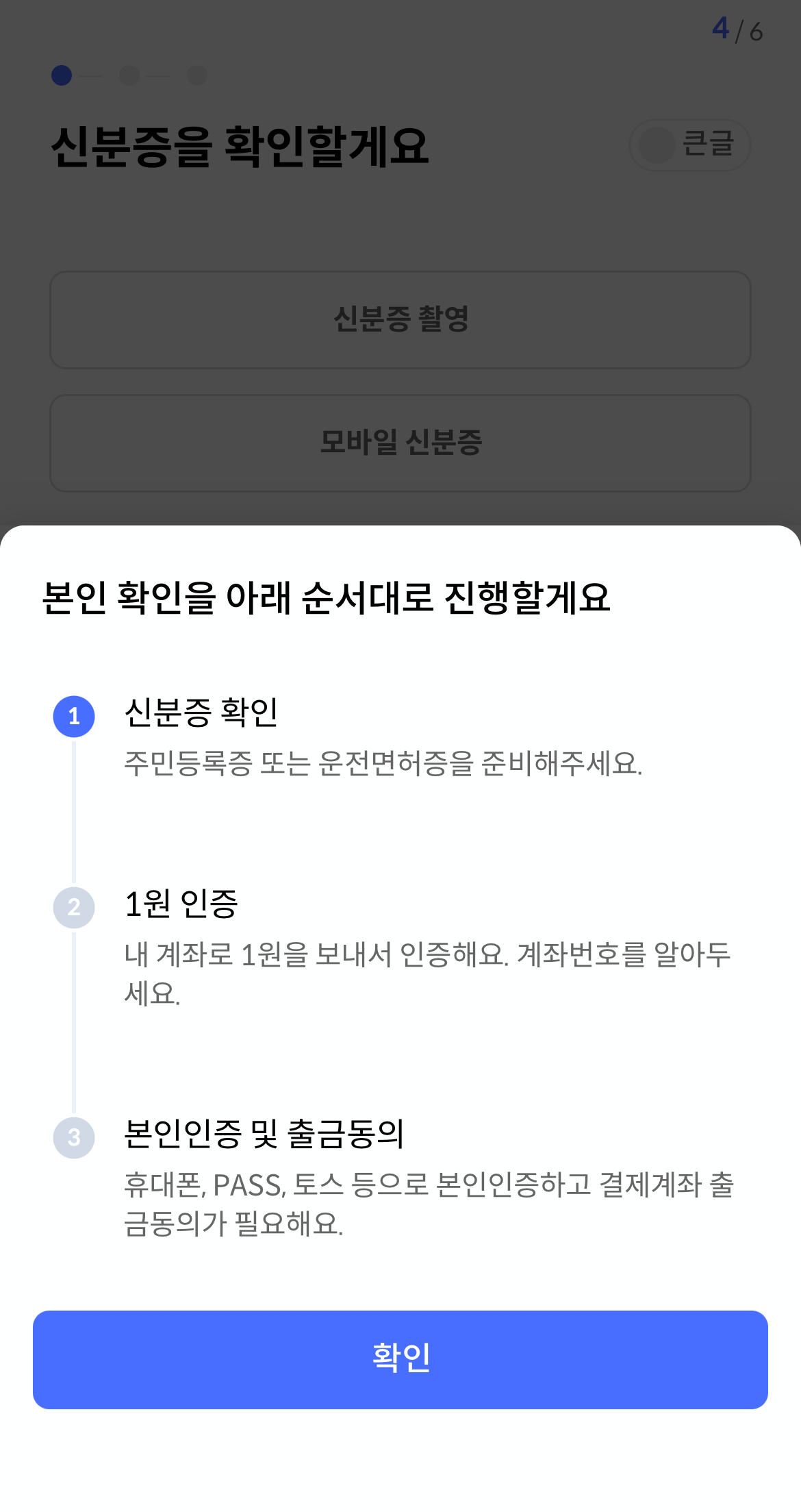 약관 동의하고, 신분증 인증하고, 발급을 진행합니다.