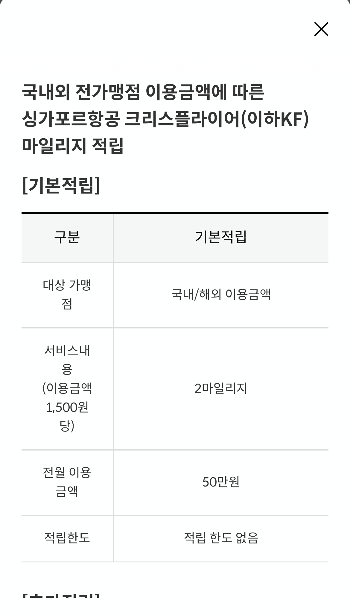 그런데 추가 적립은 월 최대 1만 마일까지군요.