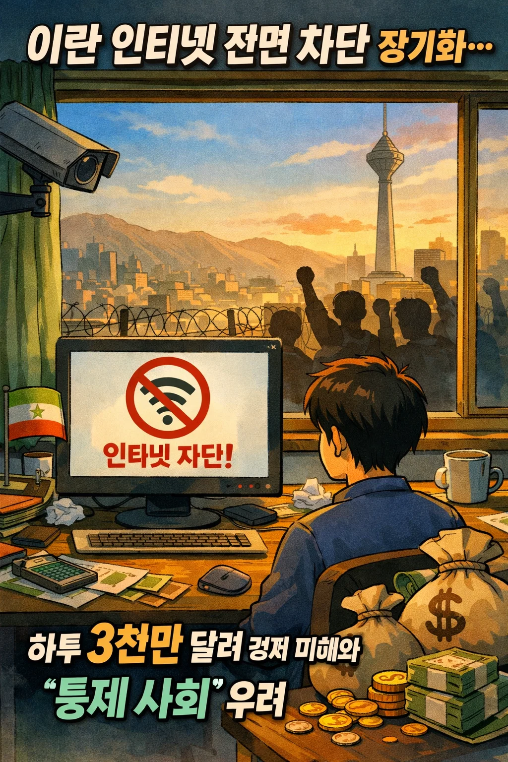 이란의 인터넷 전면 차단은 하루 3천만 달러 경제 피해를 넘어, 디지털 경제 붕괴와 통제 사회 고착화를 초래하는 '자해적 선택'입니다.