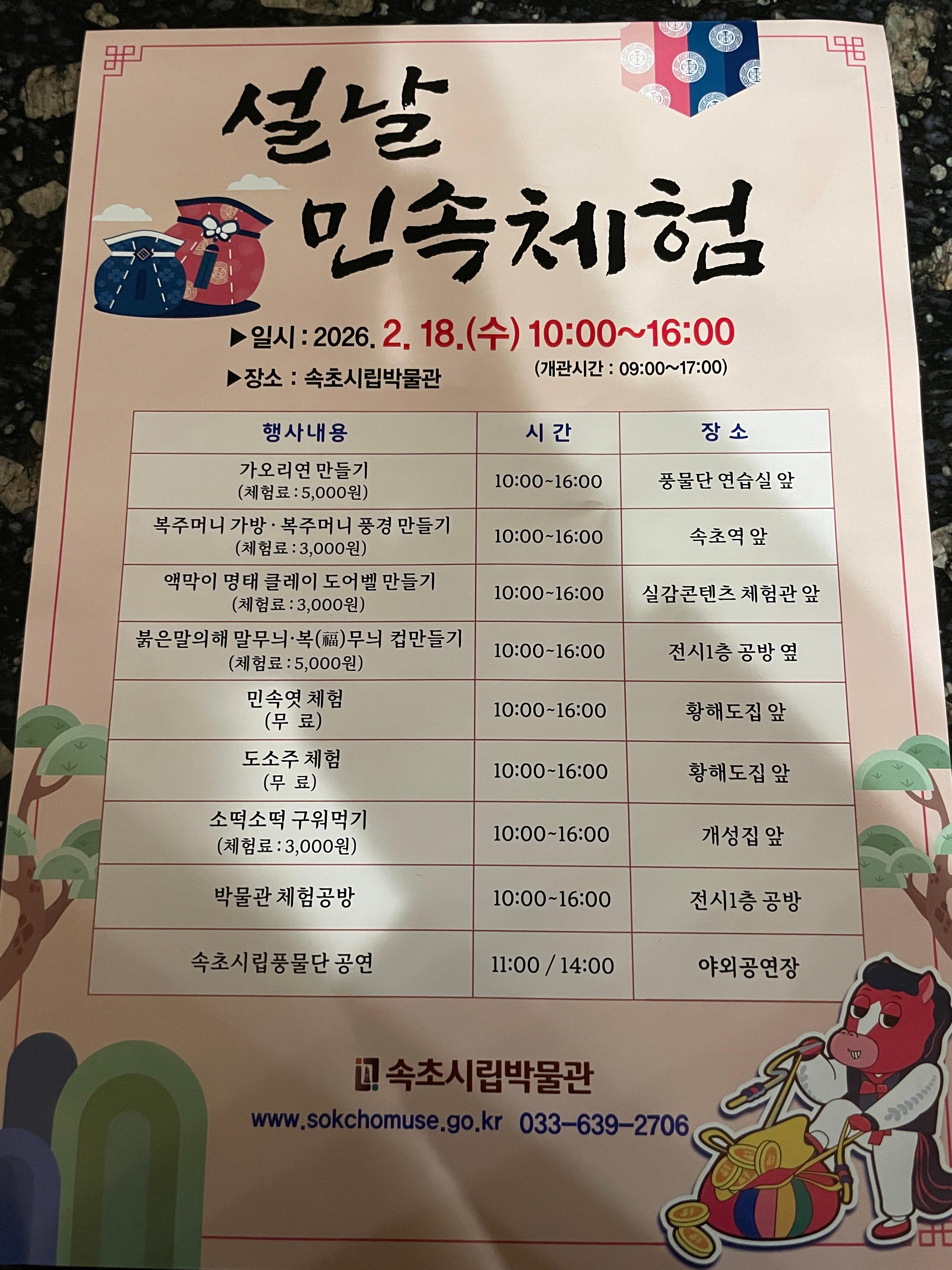 - 행사명: 속초시립박물관 2026 설날 민속체험행사